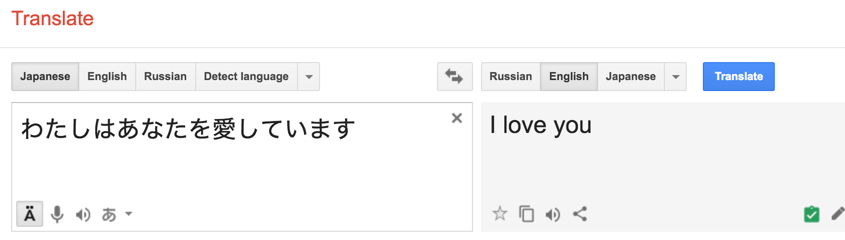 Need to translate わたしは、あなたを愛しています (watashi wa, anata o aishiteimasu) from japanese?